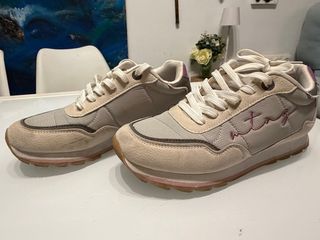 Zapatillas de la marca MTNG en talla 39. Combinan tonos beige y rosa para un look moderno. - Diseño deportivo. - Cierre con cordones. - Detalle de logo bordado.