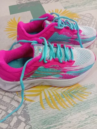 Zapatillas Fila en excelente estado, con muy poco uso. - Diseño deportivo y moderno. - Combinación vibrante de rosa y turquesa. - Suela blanca y ligera.
