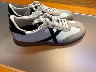 Zapatillas deportivas Munich Barru con un diseño clásico y moderno. - Combinación de blanco y negro. - Detalles en ante y piel. - Suela de goma.