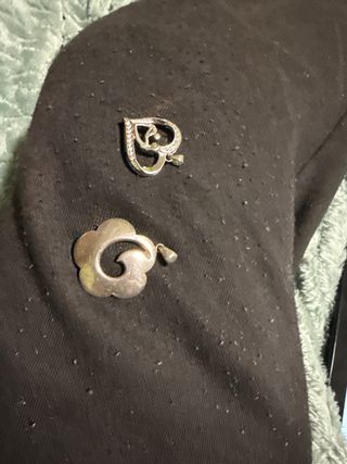 Dos colgantes con diseños delicados. - Colgante en forma de corazón con detalles brillantes. - Colgante con forma de flor estilizada. El corazon nunca se ha estrenado y por ese piedo 15 euros