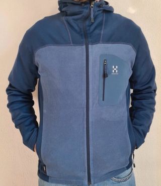 Chaqueta Haglöfs de color azul, con diseño moderno y funcional. - Capucha integrada. - Cierre de cremallera. - Bolsillo frontal con cremallera. - Paneles de diferente textura.