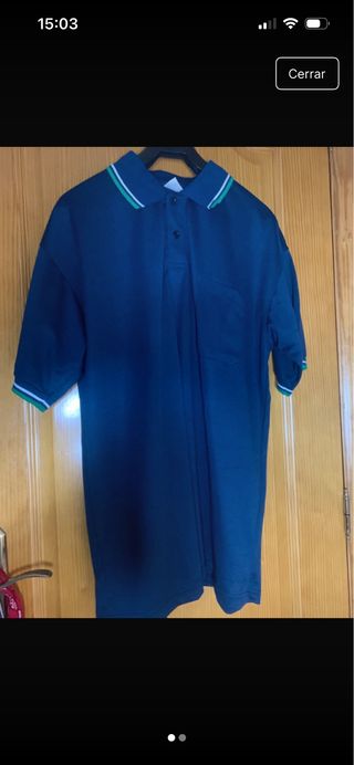 Polo de manga corta en color azul. - Cuello con detalles de rayas verdes y blancas. - Puños de manga con detalles de rayas verdes y blancas.