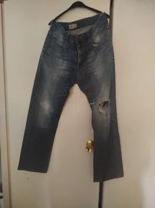 Pantalón vaquero de corte clásico. Ideal para cualquier ocasión. - Diseño desgastado. - Cierre de botones.