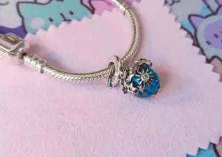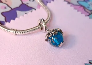 Charm de plata 925 con un diseño llamativo. El colgante tiene una piedra azul con detalles dorados y un borde decorado con estrellas. Elementos luminiscentes en la oscuridad. - Material: Plata de ley 925. - Color principal del colgante: Azul. - Detalles metálicos plateados. Sólo hago envíos.