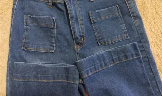 Vaqueros de corte moderno con un diseño de bolsillos distintivo. - Bolsillos frontales de parche. - Costuras visibles en contraste.