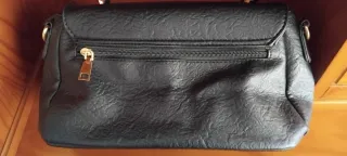 Bolso de mano con un diseño elegante y moderno. - Cierre de solapa con detalle metálico. - Correa ajustable para llevar al hombro o cruzado. - Bolsillo exterior trasero con cremallera. - Costuras decorativas en contraste.