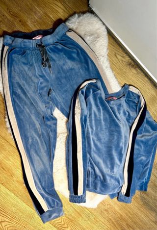 Conjunto de chándal de terciopelo de Hunkemöller. - Tejido suave y cómodo. - Diseño con detalles en contraste en las mangas y los laterales de los pantalones. - Cintura elástica con cordón ajustable en los pantalones.