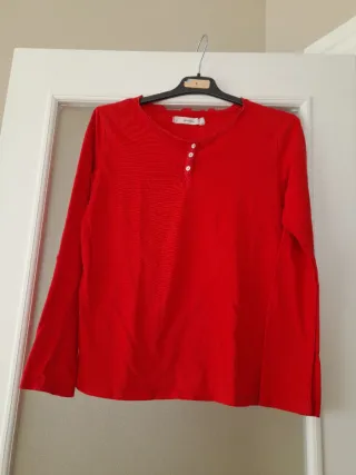 Camiseta de pijama o interior de manga larga, con puntilla en la parte delantera Marca Women'secret Talla S Color rojo Material 100x100 algodón Más cositas en mi perfil