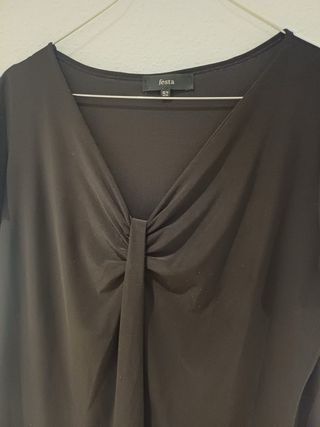 Camiseta de manga larga con un diseño drapeado en el escote. - Escote en V. - Detalle de nudo en la parte frontal.