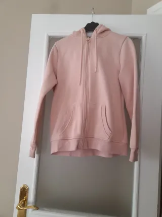 Sudadera, chaqueta con capucha, 2 bolsillos delanteros y cierre de cremallera. Talla S Color rosa Marca Primark Material algodón y Poliester, calentita y muy agradable Más cositas en mi perfil