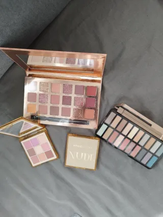 Conjunto de 4 paletas de sombras de ojos. sin estrenar, tal como se aprecia en las fotos. - Paleta grande con espejo y tonos rosados y marrones. - 2 Paletas cuadradas con tonos pastel y rosados. - Paleta rectangular con variedad de tonos.
