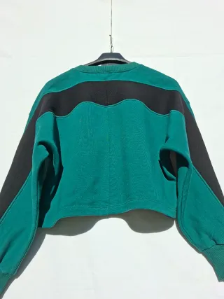 Sudadera crop de color verde con un diseño moderno y juvenil. - Parche con las letras LA en la parte delantera. - Mangas con paneles laterales en contraste. - Corte cropped y estilo college.