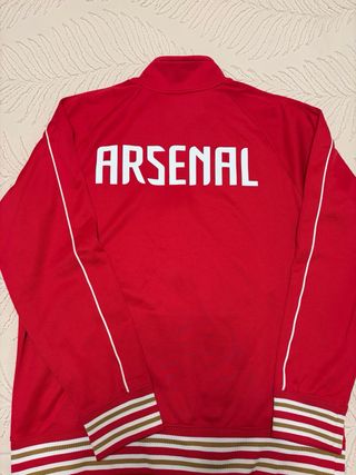 Chaqueta deportiva del Arsenal Football Club. - Diseño clásico con cremallera frontal. - Escudo del equipo bordado en el pecho. - Puños y cintura con detalles de rayas.