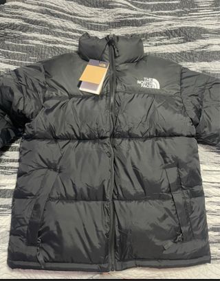 Chaqueta acolchada The North Face en color negro. Cuenta con un diseño moderno y cálido, ideal para el frío. - Cierre de cremallera frontal. - Bolsillos laterales con cremallera. - Cuello alto para mayor protección. - Logo de la marca bordado en el pecho.