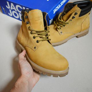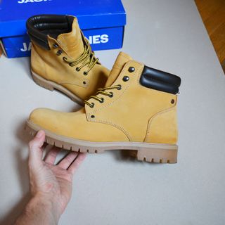 Botas de piel nobuck Jack & Jones Talla 44 US11 UK10 Prácticamente sin utilizar como se puede ver en la foto de la suela. Color caramelo / camel / honey Conservo su caja. Mismo estilo y silueta que las botas timberland