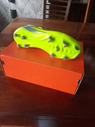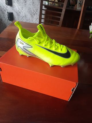 Botas de fútbol Nike Air Zoom en llamativo color verde con detalles plateados. - Diseño moderno y deportivo. - Cierre con cordones. - Suela con tacos para césped.