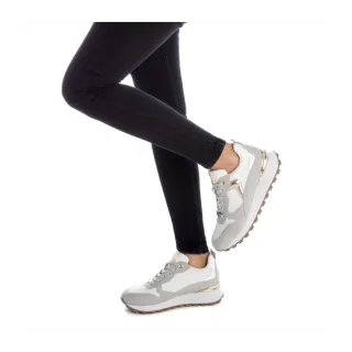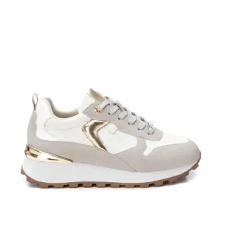 Zapatillas deportivas de mujer con un diseño moderno y detalles llamativos. - Combinación de materiales textiles y ante. - Detalle metálico dorado en el lateral. - Suela de goma con buen agarre. - Cierre con cordones.