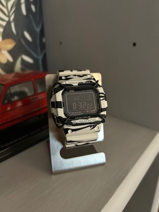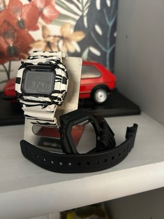 Reloj G-SHOCK modelo 5610 con un llamativo diseño de cebra. - Correa con estampado de cebra en blanco y negro. - Esfera digital. - Resistente al agua. - tough solar