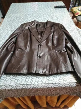 Elegante chaqueta de piel para mujer. - Diseño clásico con solapas. - Cierre de un botón. - Bolsillos frontales.