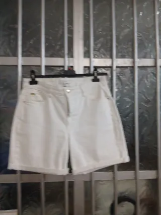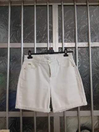 Pantalón corto de la marca Cortefiel en color blanco. Un básico para el buen tiempo. - Diseño de cinco bolsillos. - Cierre de cremallera y botón. - Dobladillo en los bajos.