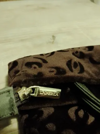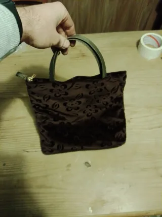 Bolso de mano con un bonito estampado floral. - Color marrón con detalles en verde. - Diseño elegante y práctico.