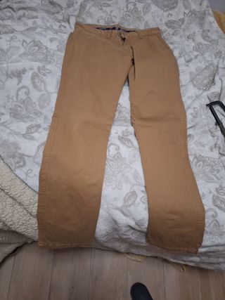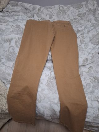 Conjunto de chaqueta y pantalón en color beige. - Pantalón con trabillas para cinturón. - Bolsillo trasero con botón. - Dobladillo en el bajo del pantalón.