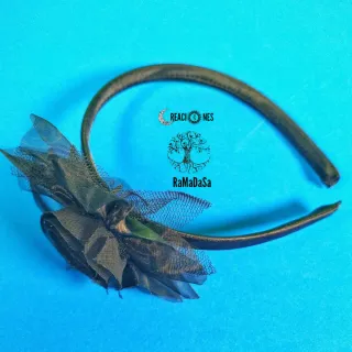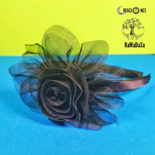 Diadema decorada con una flor de tul y detalles de red. Se venden individualmente a 3€/unidad - Diseño floral. - Adorno de tul y red.