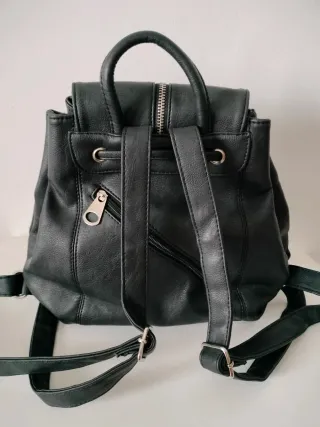 Mochila tipo bolso con un diseño moderno y práctico. - Cierre principal con cordón ajustable y botón-iman - Asa superior. - Bolsillo delantero en la tapa con cremallera plateada. - Bolsillos traseros con cremallera plateada. - Interior amplio con distintos bolsillos.