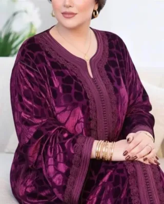Elegante kaftán de estilo árabe, perfecto para ocasiones especiales. Su diseño y caída lo hacen muy favorecedor. - Confeccionado en terciopelo con estampado. - Detalles de pedrería y bordado en el escote y puños. - Manga larga acampanada.. Se hacen a medida si es necesario, aunque hay medidas estandar para envio rápido. Confección por nosotros mismos eligiendo cada tela que favorezca a nuestros clientes