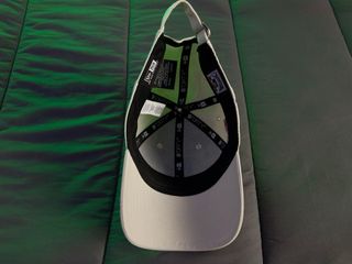 Gorra de tela con un diseño moderno y un detalle bordado. - Color azul con toques verdes. - Detalle de lazo bordado en la parte frontal.