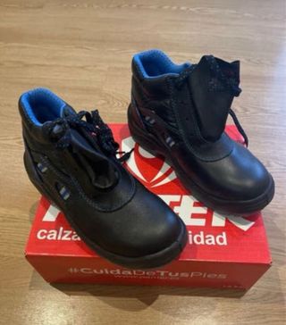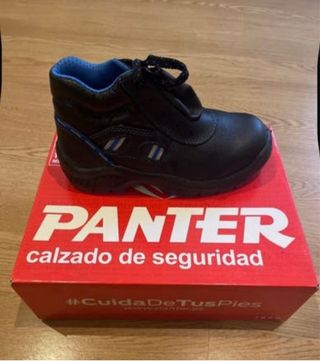 Botas de seguridad de la marca PANTER. - Color negro con detalles en azul. - Cierre con cordones. - Puntera de acero - Suela de acero