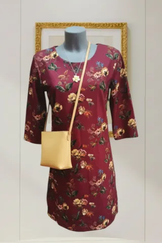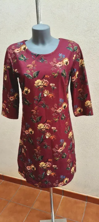Elegante vestido de color granate (burdeos) con un precioso estampado floral en tonos amarillos, ocres y azules. Presenta un diseño de manga francesa (manga al codo) y un corte recto muy favorecedor. El tejido es suave y cómodo, ideal tanto para eventos especiales como para un look de oficina sofisticado. La prenda se encuentra en buen estado. Medidas Pecho: 46 cm Largo: 89 cm #vestidoflores #vestidomujer #bordotrans #casualchic #bohostyle #vestidocorto #vintedspain #vintedfrance #modamujer