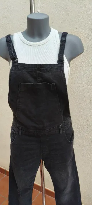 Peto vaquero en color negro de la marca Zara (línea Trafaluc). El tejido es elástico y cómodo, con un ligero efecto lavado que le da un toque moderno. Cuenta con tirantes ajustables, bolsillo central en el pecho y bolsillos laterales y traseros funcionales. Presenta un pequeño detalle de acabado desgastado (distressed) en la zona de la pierna. Se encuentra en buen estado. Marca: Zara Trafaluc Talla: S (EUR S / USA S / MEX 26) Composición: 88% Algodón, 10% Poliéster, 2% Elastano Medidas Cintura: 41 cm Largo: 141 cm #zara #zaratrafaluc #petovaquero #petonegro #denim #dungarees #casual #petiche #blackdenim #moda #style