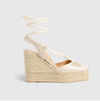 Elegantes cuñas modelo Casilda de la marca Castañer. - Diseño de cuña alta. - Cierre con lazada. - Material de esparto en la suela. - Acabado en satén.