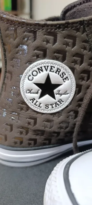 Zapatillas altas Converse de color marrón con un diseño texturizado. - Detalle de logo circular Converse All Star en toda la zapatilla. - Edición limitada. - Cordones a tono. - Suela blanca con detalles en negro.