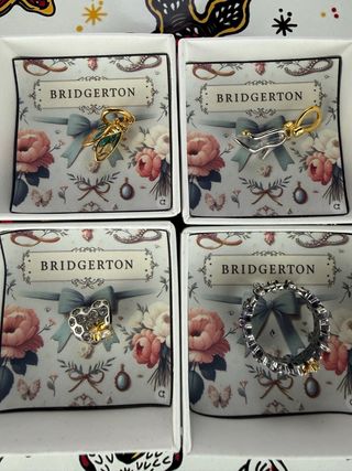 Conjunto de accesorios inspirados en Bridgerton, incluye charms y un anillo. - Charm de Abeja - Charm de zapato de cristal - Charm de corazón Abeja - Anillo Flores y Abeja