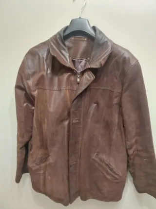 Elegante chaquetón de piel para caballero. - Material: Piel genuina. Novuk. - Color: Marrón. - Diseño clásico con cuello. - Cierre de cremallera y botones. - Bolsillos frontales. - Tres bolsillos interiores. - Forro acolchado