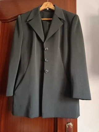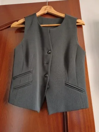 Blazer de corte clásico en un tono gris. Ideal para ocasiones formales o para añadir un toque sofisticado a tu atuendo. - Chaleco haciendo juego con la blazer - Cierre de tres botones. - Solapas de muesca. - Bolsillos frontales.