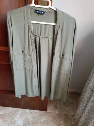 Camisa de manga larga en color verde militar. - Cuello mao. - Dos bolsillos en la parte delantera. - Cierre de botones.