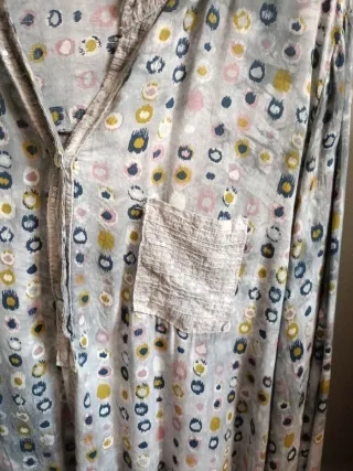 Vestido largo con tirantes finos. - Diseño liso. - Corte recto. - Tejido fluido. - Blusón camisero con botones manga corta abierto en los laterales