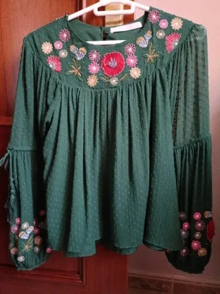 Blusa verde bordada flores