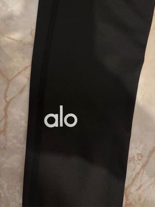 Mallas deportivas de la marca Alo Yoga. - Color negro con detalles grises en la cintura. - Diseño ajustado.