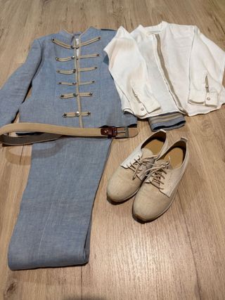 Traje comunión niño azul y beige T.8 + zapato 34