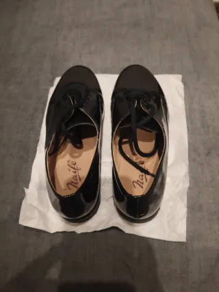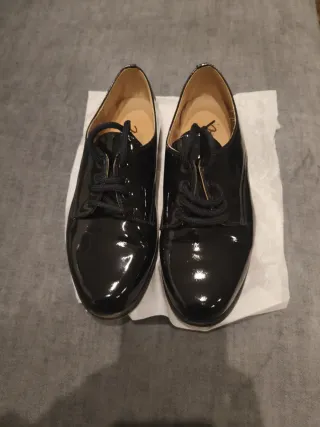 Elegantes zapatos de charol con cordones. - Color negro brillante. - Diseño clásico. - Cierre con cordones.