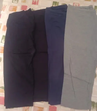 Lote de cuatro mallas pirata de Decathlon.Dos negras,una azul y una gris,desgaste en la entrepierna,se puede ver en las fotos