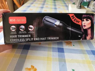 Recortadora de puntas abiertas inalámbrica . - Modelo RH-6668. - Indicador de cuidado del cabello y batería. - Puerto de carga TYPE-C. - Efecto de corte de cabello visible. -Incluye unas pinzas para sujetar el pelo + una brocha para limpiarla.