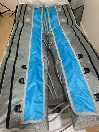 Equipo de presoterapia profesional comprado en mayo. - Incluye mangueras y accesorios. - Diseño moderno en gris y azul.