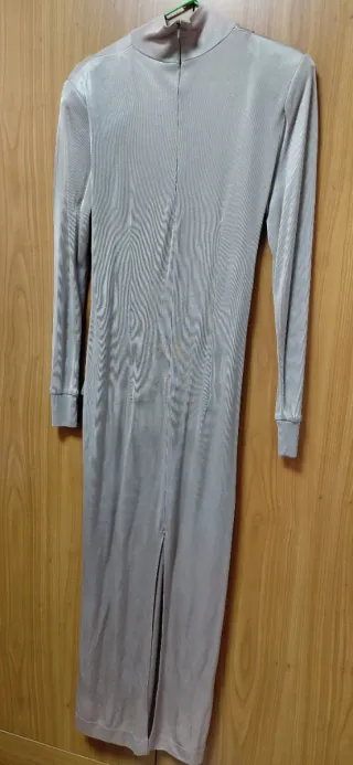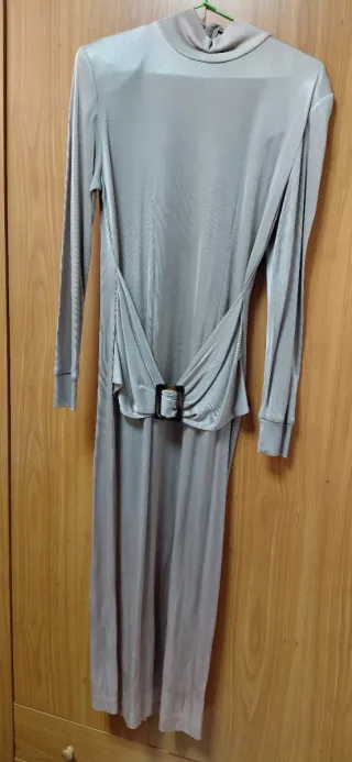Vestido largo gris con cinturón