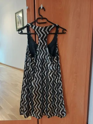 Vestido fiesta lentejuelas plata y negro T.M