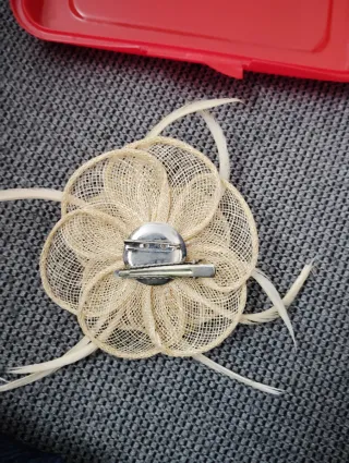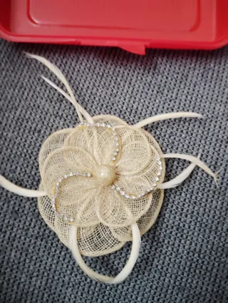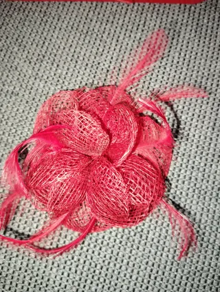Este accesorio es perfecto para adornar tu ropa o cabello. - Diseño floral con plumas. - Elaborado con malla y fibras.